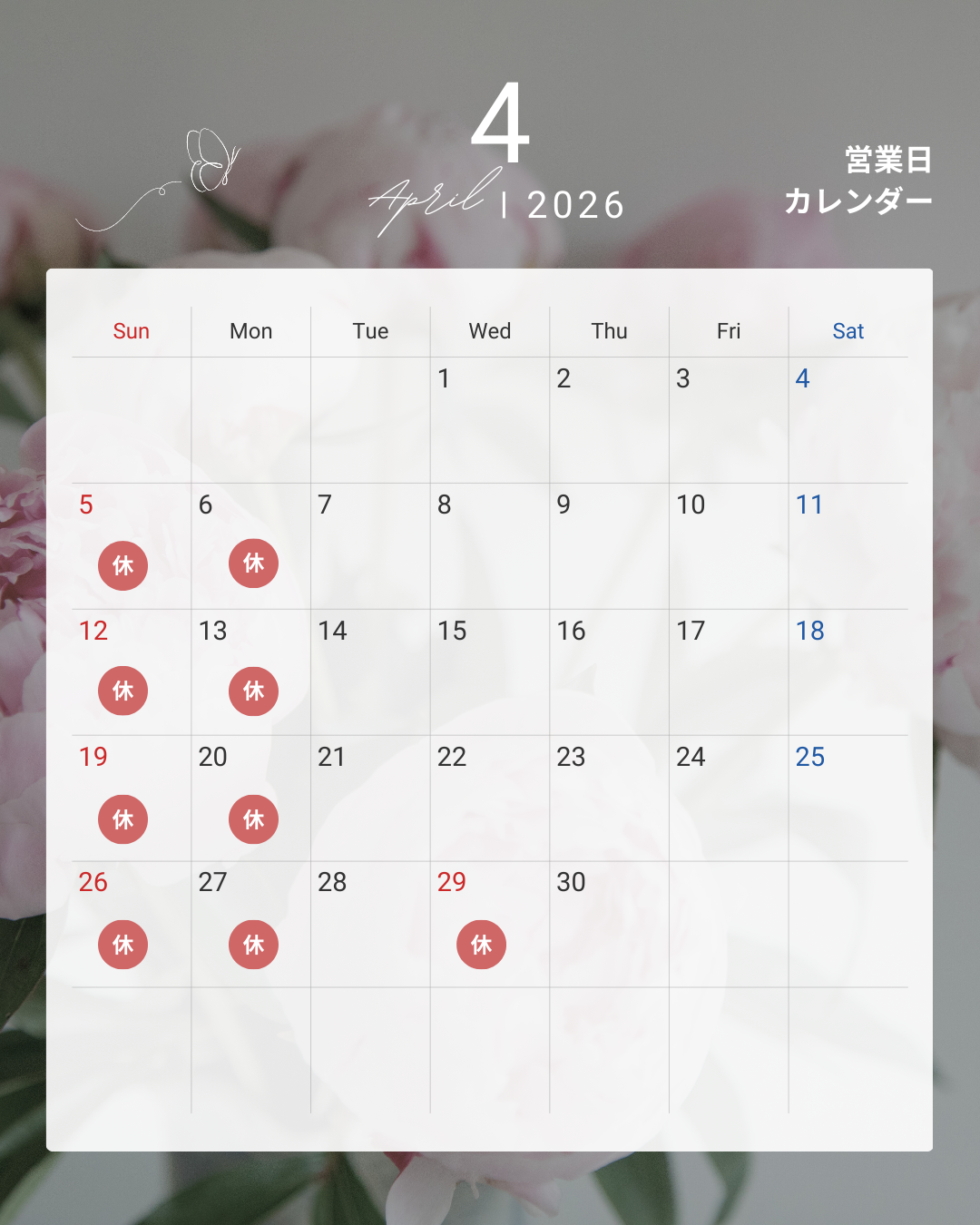 3月は営業日が少ないため、お早めにご連絡いただけますと幸いです😊